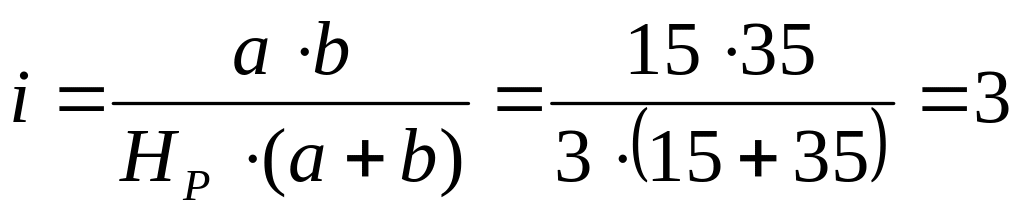 Показник приміщення враховує висоту встановлення світильника над робочим місцем Нр, довжину та ширину приміщення а і b і знаходиться за формулою: