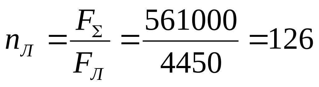 де F∑ – світловий потік однієї лампи , який вибираємо за табличними даними.