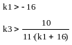 Данной системе неравенств, задающей область устойчивости на плоскости параметров k1, k3, соответствует заштрихованная область на следующем рисунке.
