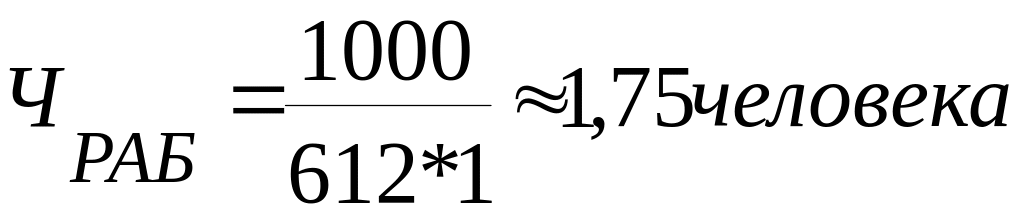 На основе рассчитанной трудоёмкости работ определяется общая численность работников по формуле (1.3.4):