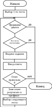 раем тесты соответствующие данному уровню сложности, учебному элементу и соответственно теме. При выборе теста студенту выдается задание на которое студент дает ответ. Ответ студента подвергается контролю. Если ответ студента не соответствует правильному, тогда студенту предлагаются тесты соответствующие более легкому уровню сложности т.е. происходит уменьшение уровня сложности с и соответственно оценка за ответ снижается. И так до тех пор, пока не будут пройдены все тесты касающиеся выбранного учебного элемента.