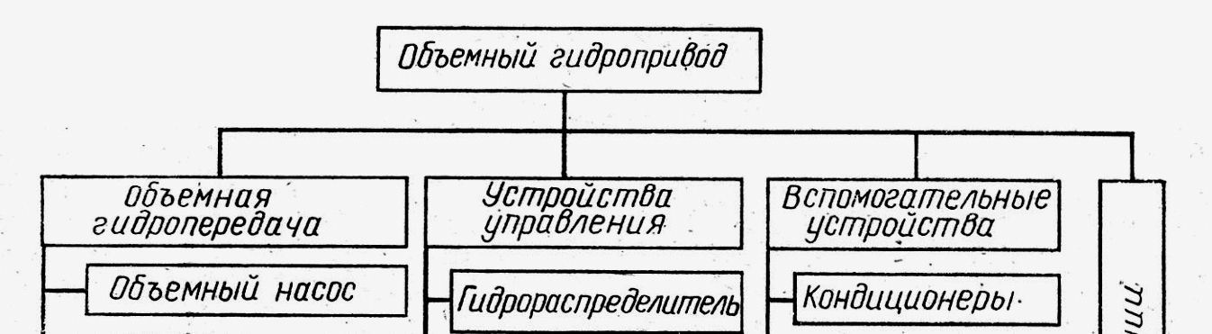 Объемный гидропривод — это гидропривод, в котором используются объемные гидромашины. Принцип действия объемного гидропривода основан на практической несжимаемости рабочей жидкости и на ее свойстве передавать давление по всем направлениям в соответствии с законом Паскаля. -В состав насосного гидропривода входят гидропередача, гидроаппараты, кондиционеры рабочей жидкости, гидроемкости и гидролинии.