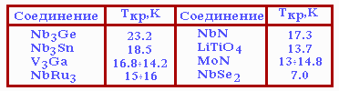 Приведем также примеры критических плотностей тока некоторых сверхпроводниковых сплавов: