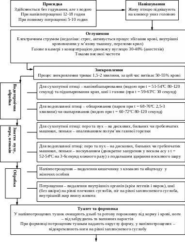 Технологічні операції з переробки птиці показано на схемі 6.2.