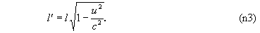 3. Если в одной системе отсчета покоящаяся линейка имеет длину l, то в системе отсчета, в которой линейка движется со скоростью u вдоль своей оси, ее длина
