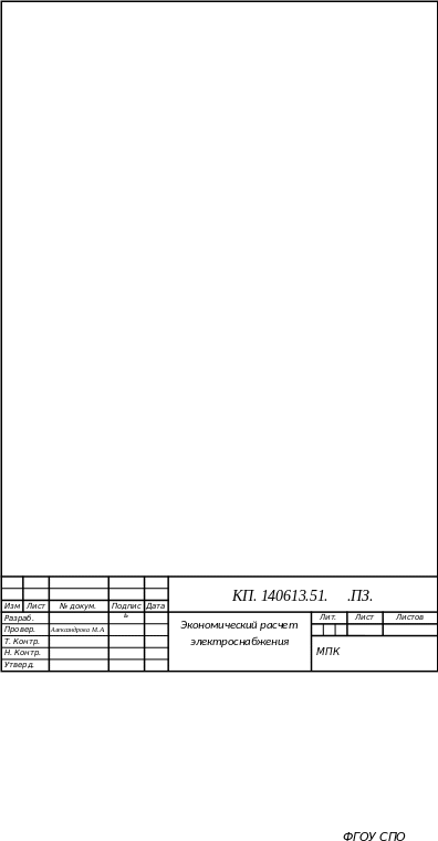 Экономический расчет электроснабжения (наименование отделения, цеха, организации)___________________________________________________