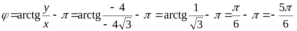 В нашем случае z = – 4 – 4∙i. Имеем х = Re z = – 4 , у = Im z = – 4.