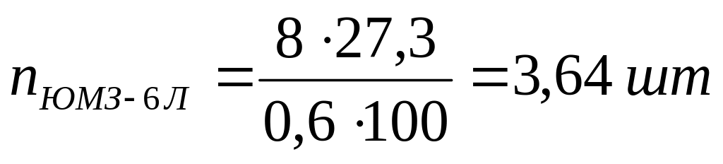 де nЮМЗ-6Л - відсоток, який припадає на ЮМЗ-6Л від загальної кількості тракторів, nЮМЗ-6Л = 27,3 %;