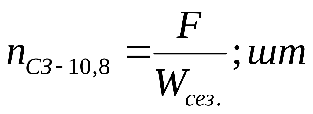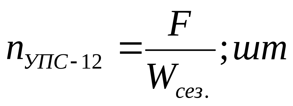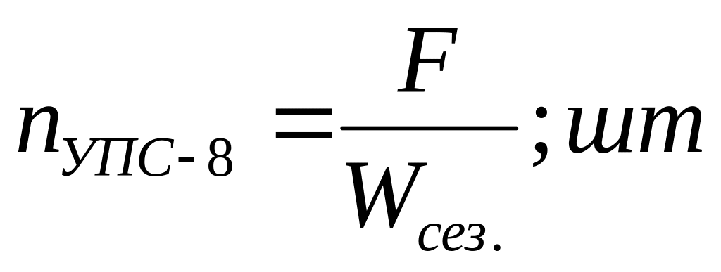 Wсез. - сезонний нормативний виробіток машини, га; WсезУПС-8 = 95 га. Отже: