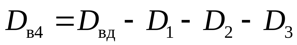 где Dвд, iдпв – расход и энтальпия воды на выходе из деаэратора, причем Dвд = Dв3 , кг/с; Dд – расход греющего пара на деаэратор ДПВ; iд = i3 – энтальпия греющего пара на ДПВ, равная энтальпии пара в отборе № 3, кДж/кг; D´п, iп – расход и энтальпия выпара из расширителя продувочной воды; Dв4 и iв4 – расход и энтальпия воды на выходе из четвертого подогревателя, причем