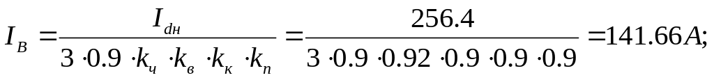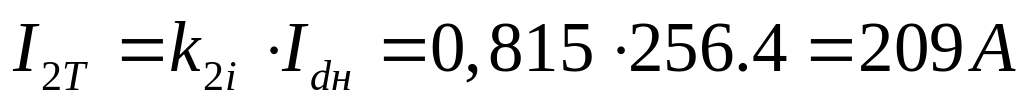 3.4.3.2 Ток вторичной обмотки трансформатора определяется по величине выпрямленного тока ротора Idн, соответствующей длительной нагрузке двигателя: