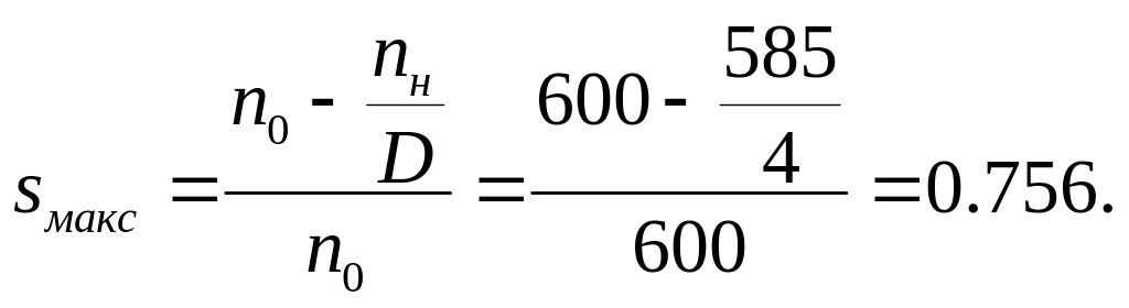 Максимальное скольжение определяется из значения диапазона регулирования двигателя D,