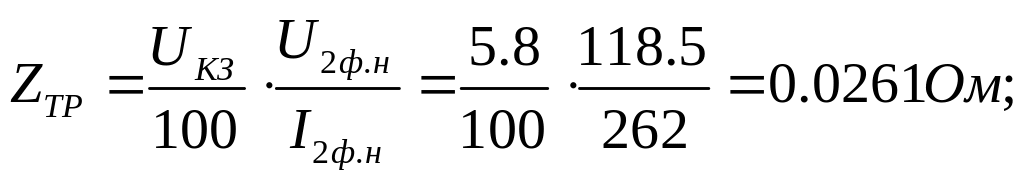 Индуктивное сопротивление обмоток трансформатора на фазу: