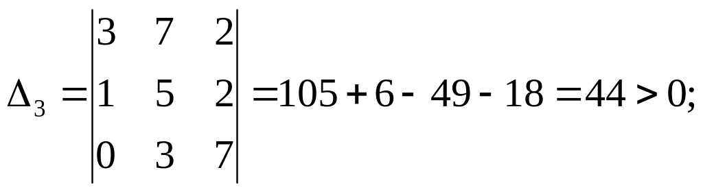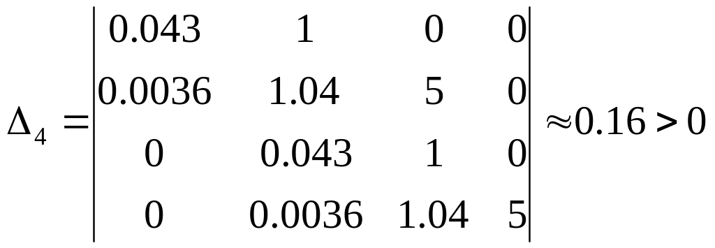 і формулює умову стійкості в залежності від знаків визначників.