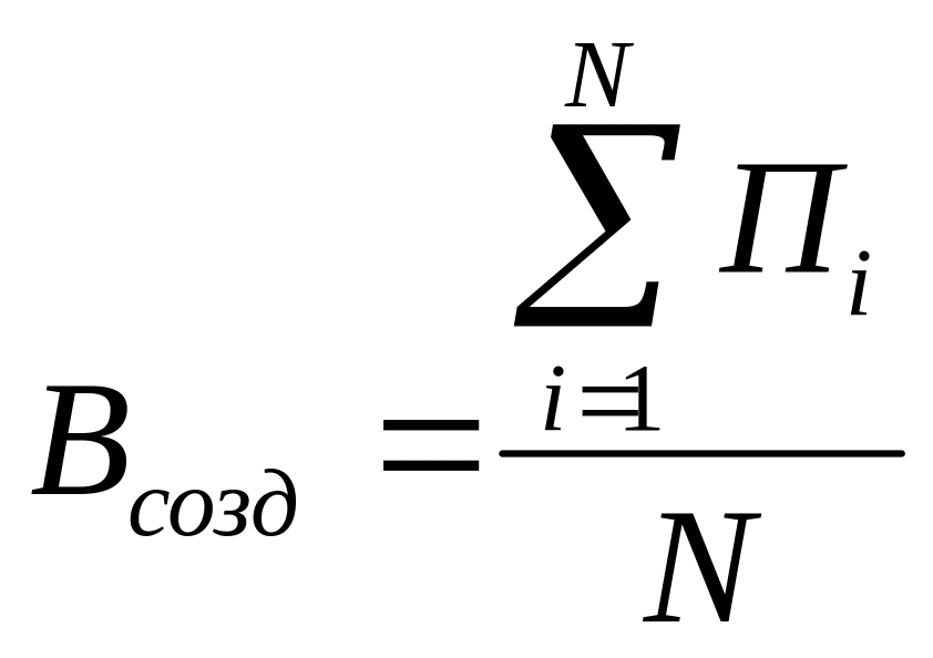 где Всозд – средняя продолжительность разработки одного новшества (изобретения, технического решения, идеи), завершенного в рассматриваемый период; N – общее число созданных в результате проведения собственных НИОКР новшеств за рассматриваемый период; П – время, затраченное на создание i-го новшества.