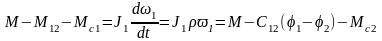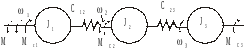 Здесь М12 и М23 – моменты упругого взаимодействия между инерционными массами J1 и J2, J2 и J3, зависящие от величины деформации 1-2 и 2-3.