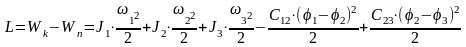 т.к. ко 2-й и 3-й массам электромагнитный момент двигателя не приложен. Функция Лагранжа L=Wk-Wn.