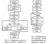Из пояснений к задаче следует, что в алгоритме необходима проверка условия N = 0. В случае выполнения данного условия результирующая переменная Р должна получить значение 1, в противном случае следует организовать цикл для перемножения элементов натурального ряда чисел от 1 до N. Полученное произведение будет искомым значением результирующей переменной Р. Схема алгоритма приведена на рис. 1.16.