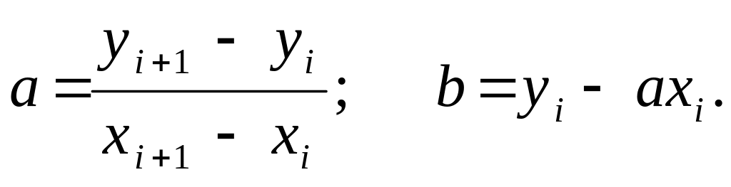 Линейная интерполяция (y = ax + b) выполняется всего по 2-м точкам (xi, yi) и (xi + 1, yi +1) и очевидно получаем систему 2-х линейных уравнений: