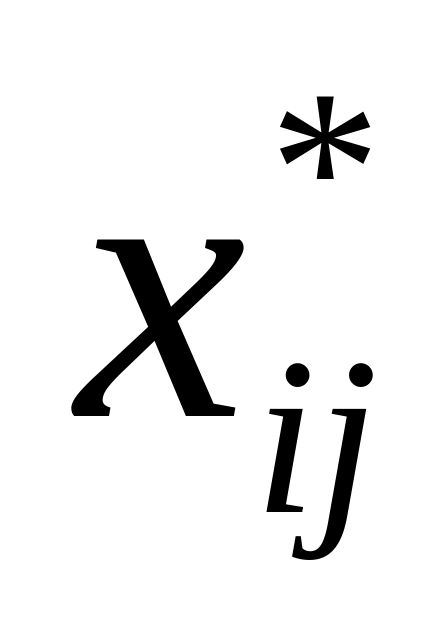 xij – количество продукции, перевозимой с i-ой фабрики в j-ый населенный пункт. Таким образом, общее число варьируемых параметров равно 12 (i = 1,…,3; j = 1,…,4). В связи с отсутствием дороги между фабрикой AF2 и пунктом К3 примем условно транспортные расходы на этом участке очень высокими, например, 20 руб/кг.