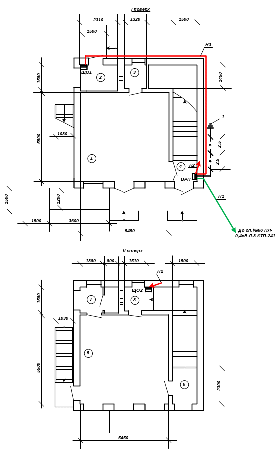 Враховуючи технологічні процеси, вимоги пожежної безпеки та електробезпеки плануємо встановити ввідно-облікову шафу в приміщенні сходової клітини на І поверсі та позначимо її – ВРП. На ІІ поверсі плануємо встановити незалежну розподільчу шафу ЩО2 в коридорі, що є зручним для експлуатації, тому що шафа розташована при виході зі сходів на ІІ поверсі. В приміщенні топкової на твердому паливі плануємо встановити окрему розподільчу шафу ЩО1, так як топкова має окремий вхід, що незалежний від приміщень комерційного призначення на І поверсі. Живлення розподільчих шаф позначаємо буквами: Н2- кабель живлення розподільчої шафи ІІ поверху, Н-3 - кабель живлення розподільчої шафи топкової на І поверсі. Вибір типів кабелів, умови прокладки та перерізи виконаємо в розділі 2.7.