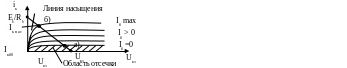 Каждая точка линии насыщения соответствует некоторое граничное значение тока базы (iб = iб насыщ).