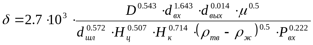 При окончательно выбранных геометрических и рабочих параметрах гидроциклонов граничная крупность задерживаемых частиц (мкм) и производительность (л/с) уточняются по формулам [6]: