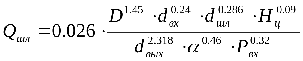 Потери воды с выделенным осадком в первом приближении можно принимать (0.07÷0.08)Q для циклонов диаметром до 100 мм и (0.03÷0.04)Q для циклонов диаметром свыше 100 мм. Уточненный расход шлама вычисляется по выражениям: