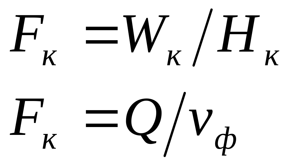 Площадь сечения катионитовых фильтров определяют по одной из формул:
