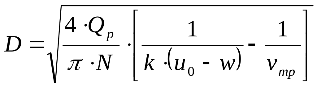 где vmp – скорость движения воды в центральной трубе, принимаемая равной не более 30 мм/с.
