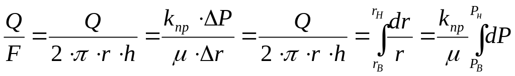 Нефть – неидеальная система (компонента нефти взаимодействуют между собой), поэтому линейный закон фильтрации для нефти, содержит вязкость, учитывающую взаимдействие компонентов внутри нефтяной системы: