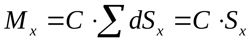 Используем для получения формулы вычисления Sx , Sу аналогию с моментом силы в теоретической механике. Будем считать что наша фигура dA имеет толщину t, тогда объём фигуры :