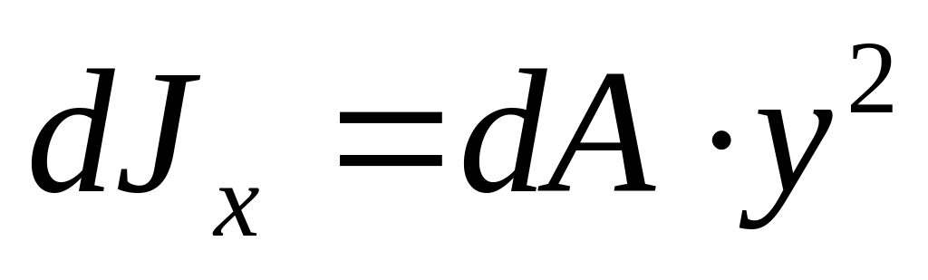 Осевым моментом инерции dJx относительно оси х бесконечно малой площади dA называется произведение dA на квадрат плеча, то есть на у2: