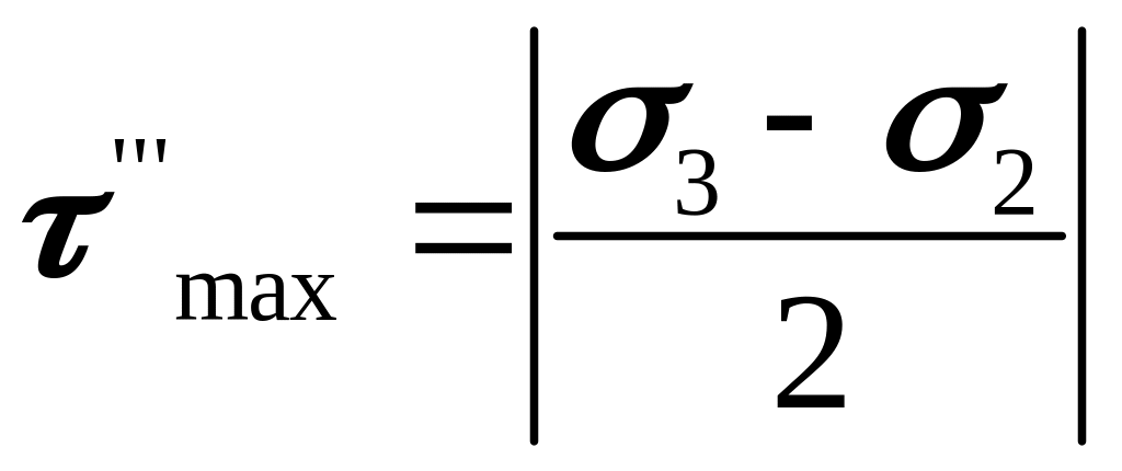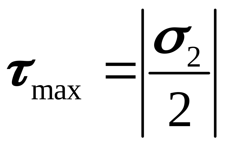 Как было получено ранее, максимальные касательные напряжения возникают на площадках, наклоненных под углом 45о к направлению действия , и определяются по формуле: