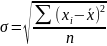 4. Среднее квадратическое отклонение – является мерой надежности средней величины, чем оно меньше, тем точнее среднее арифметическое отражает собой всю изучаемую совокупность. Выражается в тех же единицах измерения, что и признак
