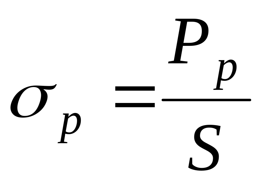Если к образцу с поперечным сечением S приложить плавно возрастающую нагрузку Р, то напряжение в материале будет возрастать до определенной величины.