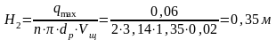 Высоту щели Н2 между нижней кромкой центральной трубы и поверхностью отражательного щита из условия обеспечения в ней скорости Vщ = 0,02 м/с.