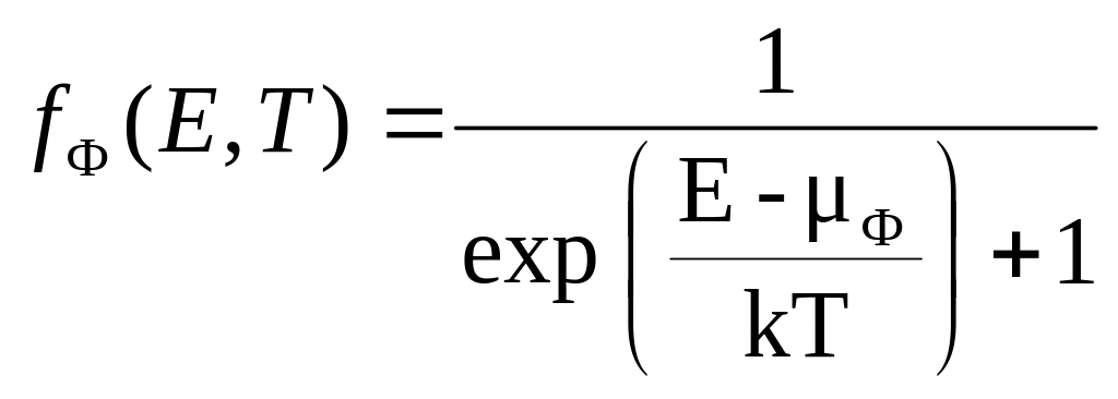 Функция распределения Ферми – Дирака определяет среднее число частиц, подчиняющихся принципу Паули, в данном энергетическом состоянии, т.е. она выражает вероятность заполнения данного состояния: