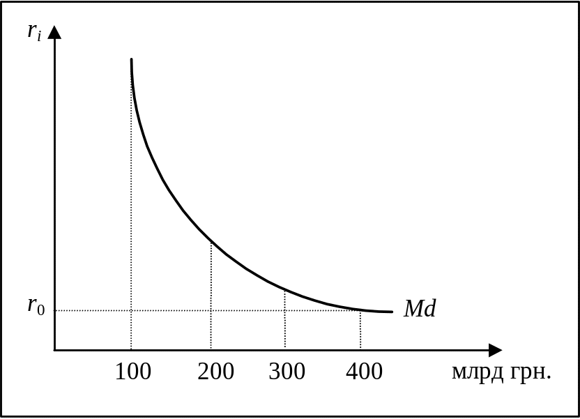 Функціональну залежність попиту на гроші від рівня процентної ставки покажемо на рис. 3.6.