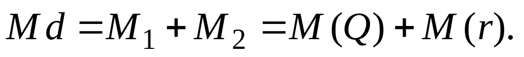 На рисунку показано, що сукупний попит на гроші складається з двох частин: трансакційного (операційного) М1 функції від доходу (Q) і попиту на портфельні активи М2 функції від норми процента (r)