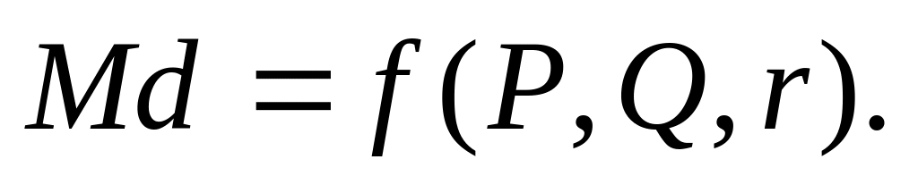 Із цього рівняння видно, що зміни в індексі цін (Р) за адекватності інших умов не впливають на величину попиту на реальні грошові залишки. Функція попиту на гроші залежить переважно від реального ВВП і номінальної норми процента. А тому функціональну залежність попиту на гроші можна спростити.