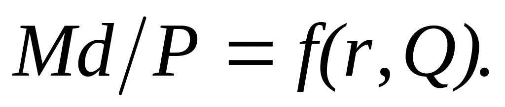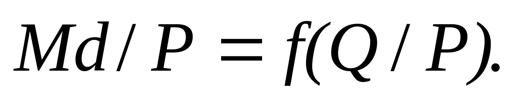Згідно з монетарною теорією реальний попит на гроші являє собою функцію від номінальної процентної ставки і реального рівня доходу: