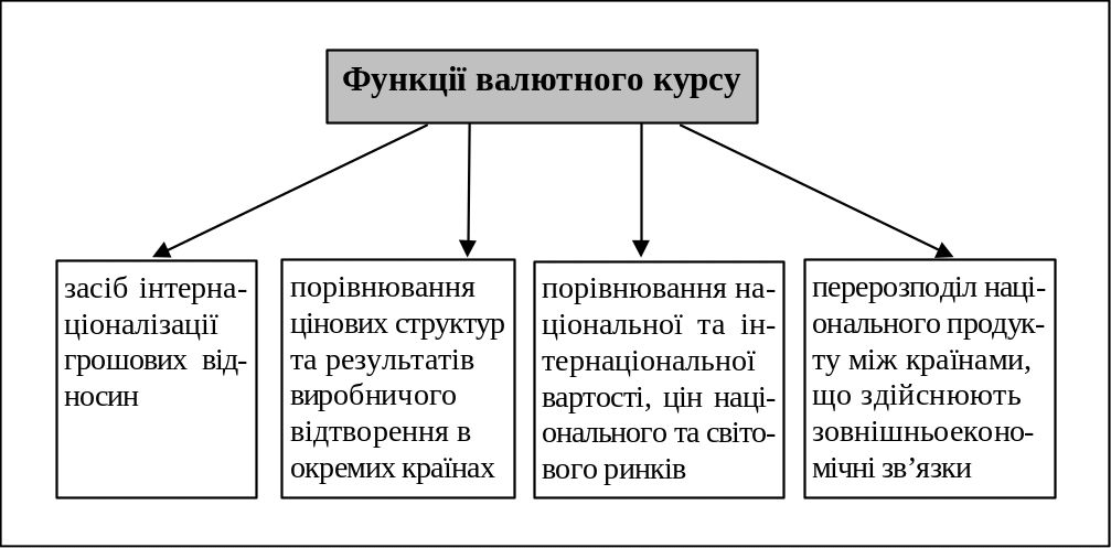 По-перше, за його допомогою знімається економічна обмеженість національної грошової одиниці. Відбувається перетворення її локальної цінності на інтернаціональну. Відтак валютний курс є засобом інтернаціоналізації грошових відносин, утворення світової грошової системи.