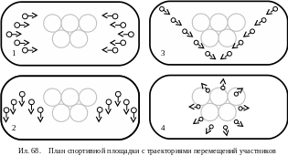 В планах крупных театрализованных представлений, особенно ландшафтных, включающих значительные пространства, необходимо подробно указать с помощью специальных знаков (символики) основные зрелищные и игровые площадки, подходы к ним, маршруты шествий, эвакуационные пути зрителей и участников зрелища.