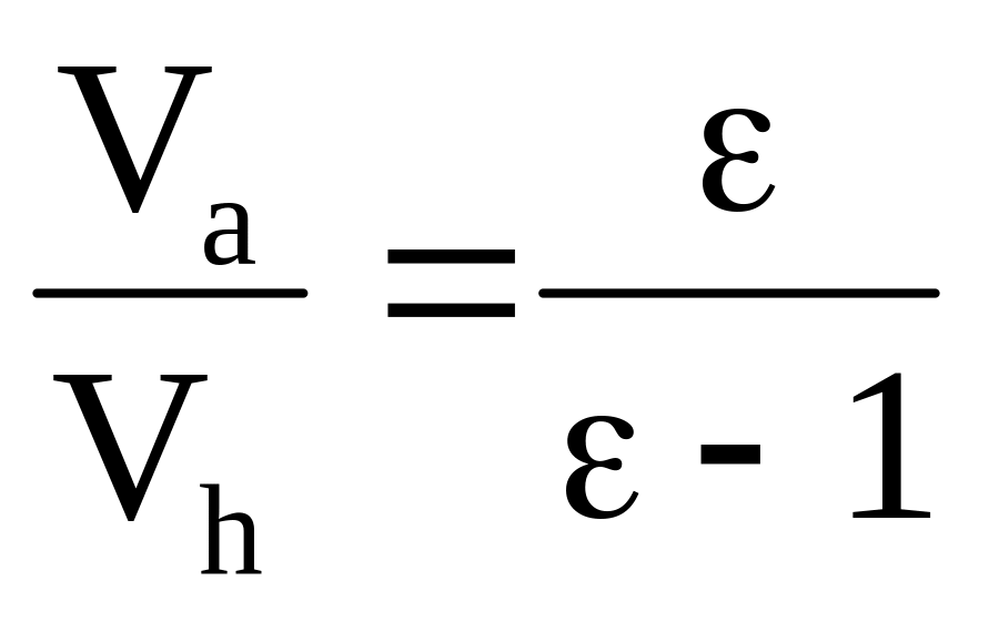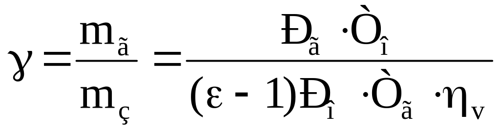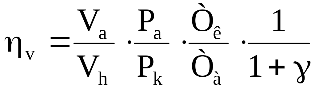 2.2.4. Коефіцієнт наповнення (γ) являє собою відношення кількості свіжого заряду (mз), яка дійсно надійшла до циліндра, до тієї кількості свіжого заряду (mh), яка б могла теоретично вміститися в робочий циліндр (Vh).