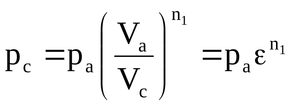 Процес стиску описується рівнянням політропи: pVn1 = const; TVn1 = const, де n1 - показник політропи стиску.