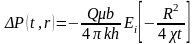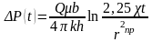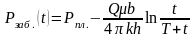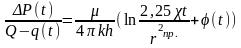 Q — стационарный дебит скважины до ее остановки, м3/с; q(t) — переменный во времени приток в скважину после ее остановки, м3/с.