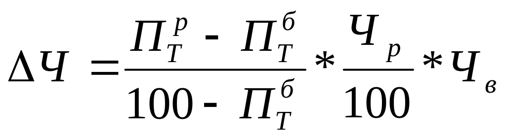 Зміна чисельності працівників за рахунок упровадження нової техніки і технологій, модернізації устаткування розраховують за формулою: