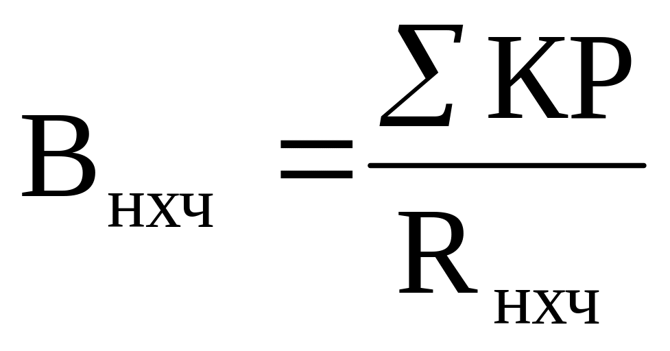 Продуктивність праці (виробіток) працівників дистанцій цивільних споруд характеризується об'ємом робіт по капітальному ремонту в грошовому вираженні (по кошторисній вартості) (ΣКР), що доводиться на одного працівника (Rнхч)