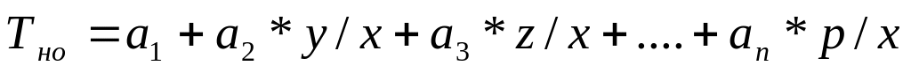 де а1, а2,…, аn — коефіцієнти трудомісткості, визначаються методами математичної статистики виходячи з даних про норми часу обслуговування та факторів трудомісткості на обстежених базових підприємствах;